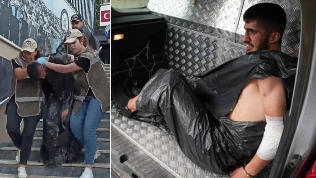 DUVAR – İstanbul Ümraniye’de bir polisin hayatını kaybettiği saldırı sonrası gözaltına alınan Yunus Emre Geçti, çöp poşeti giydirilerek hayvan aracına bindirildi.